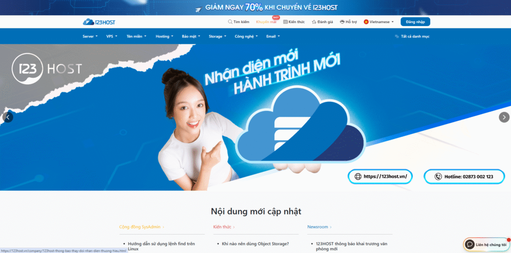 Bước 1 Truy cập website: Đầu tiên, hãy truy cập trang web chính thức của 123HOST tại địa chỉ 123host.vn. Đây là nơi bạn có thể khám phá toàn bộ các dịch vụ và ưu đãi hiện có.