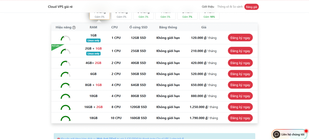 - 3 năm: Giảm tối đa 35% (đặc biệt với các gói NVMe VPS).