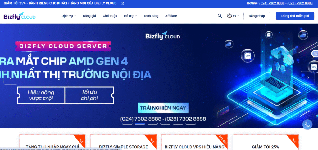 Nhân dịp đón năm mới, Bizfly Cloud đã triển khai chương trình khuyến mãi đặc biệt mang tên “GIẢM GIÁ SỐC – ĐÓN LỘC VỀ”, mang đến cơ hội tuyệt vời để tối ưu chi phí cho các dịch vụ máy chủ ảo. Chương trình này diễn ra trong khoảng thời gian ngắn, từ 0h ngày 01/01/2025 đến 23h59 ngày 03/01/2025, nhắm đến việc hỗ trợ khách hàng nâng cao hiệu suất hoạt động và doanh thu.