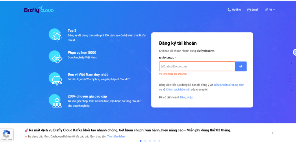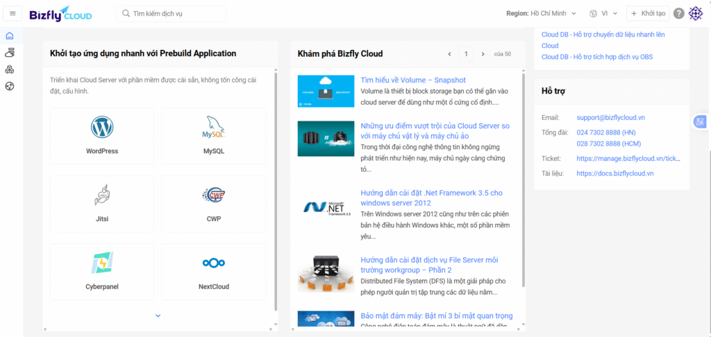 - Email Hỗ trợ kỹ thuật: support@bizflycloud.vn