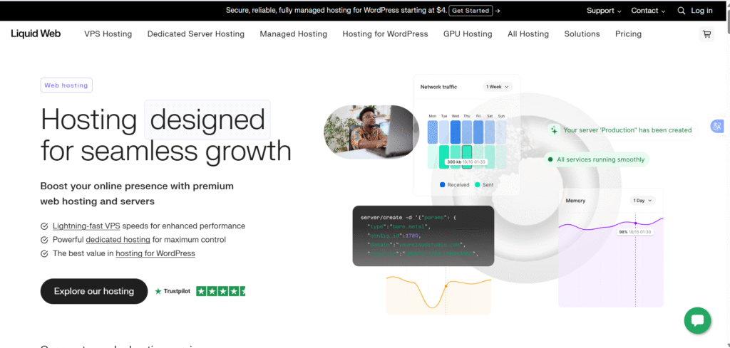 Bên cạnh đó, Liquid Web còn cung cấp nhiều lựa chọn khác như Managed Hosting, Cloud VPS, Bare Metal Servers, Managed WooCommerce và Managed Magento, cho thấy khả năng đáp ứng đa dạng nhu cầu của khách hàng.