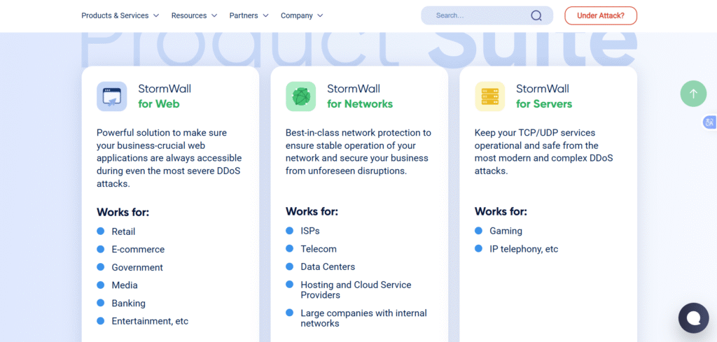 Một trong những điểm nhấn của StormWall là khả năng triển khai bảo vệ chỉ trong vòng 10 phút, cùng với dịch vụ hỗ trợ khách hàng 24/7 với thời gian phản hồi chỉ 15 phút, mang lại sự nhanh chóng và an tâm cho người dùng. Các dịch vụ chống DDoS cốt lõi của họ bao gồm StormWall for Web, StormWall for Networks và StormWall for Servers.