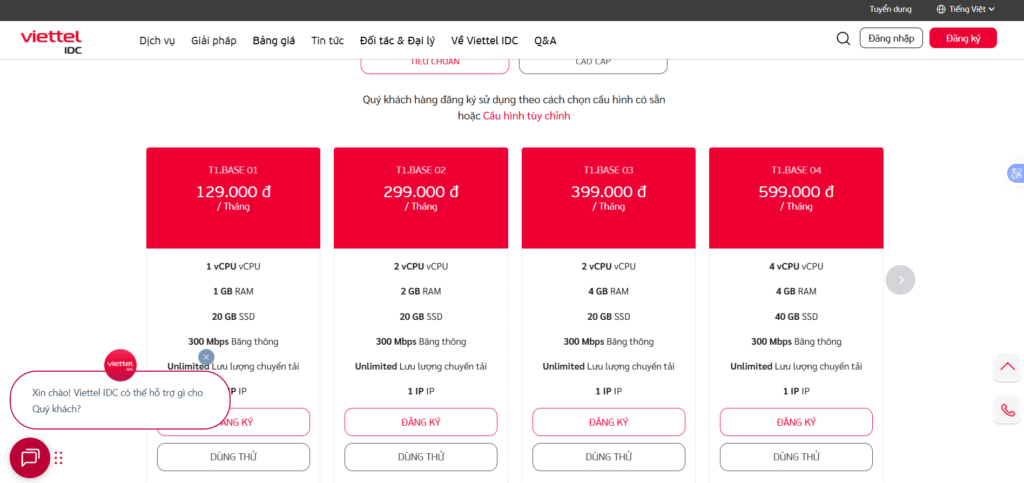 Chào bạn, bạn đang tìm kiếm những ưu đãi hấp dẫn để nâng cấp hệ thống Hosting, VPS hoặc tăng cường khả năng Chống DDoS với dịch vụ từ Viettel IDC phải không?
