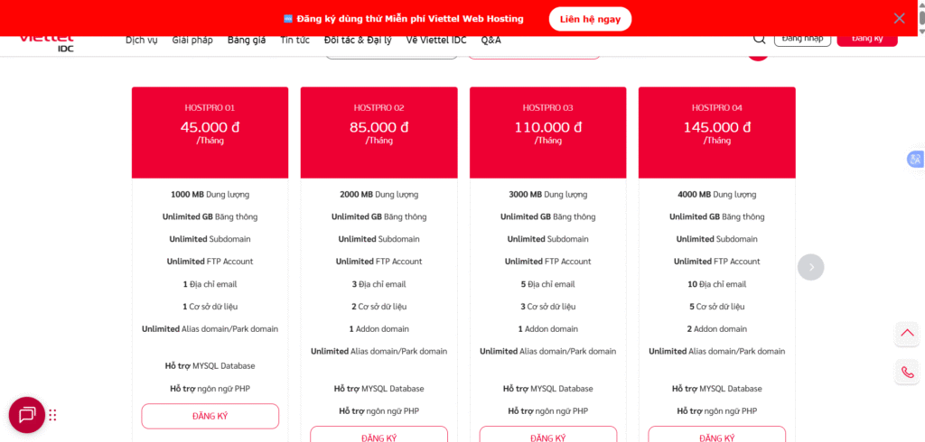 - Dịch vụ Hosting: Cung cấp nền tảng vững chắc cho hoạt động trực tuyến với Viettel Web Hosting và Viettel Email Hosting.