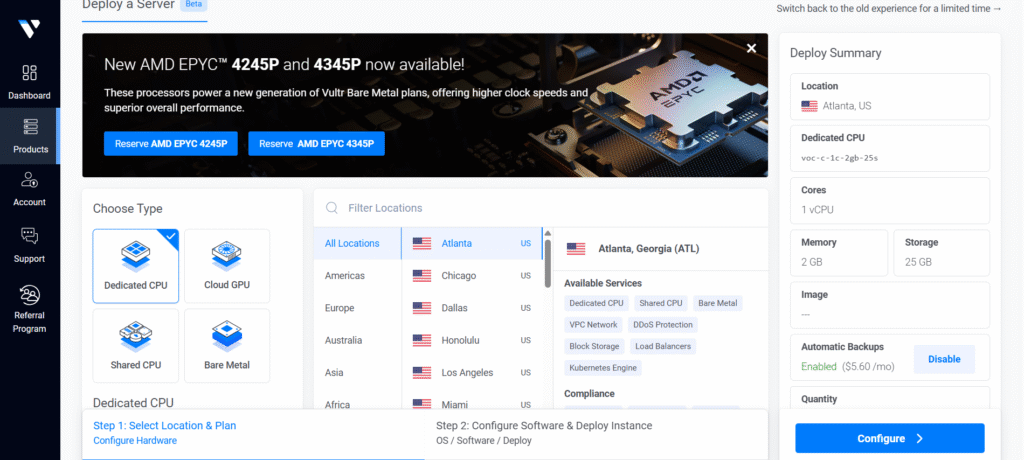 Chọn đúng dịch vụ: Vultr cung cấp nhiều loại máy chủ với hiệu năng và chi phí khác nhau, phù hợp với từng nhu cầu cụ thể: