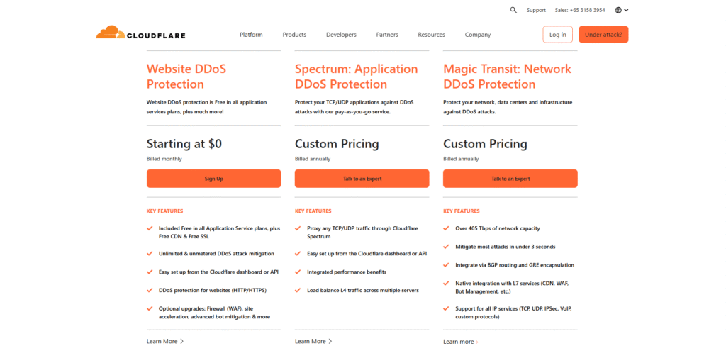 Đối với các website, Website DDoS Protection được bao gồm miễn phí trong tất cả các gói dịch vụ ứng dụng, đi kèm với CDN và SSL miễn phí.
