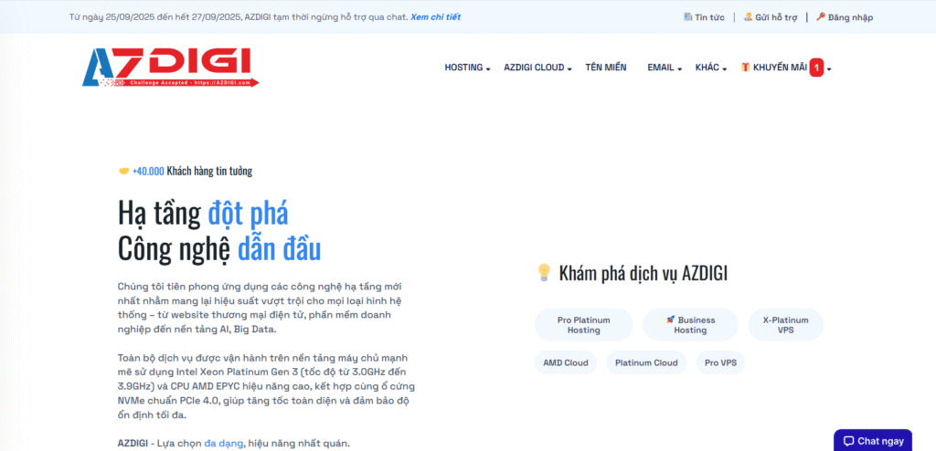 - Gói dịch vụ: Website đang chạy trên AMD Cloud Server. Điều này nhấn mạnh vai trò của hạ tầng mạnh mẽ.