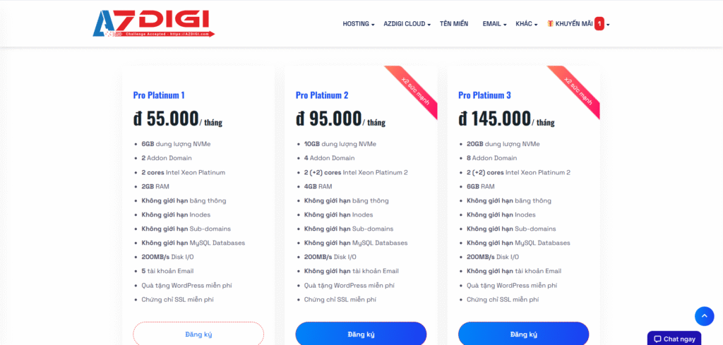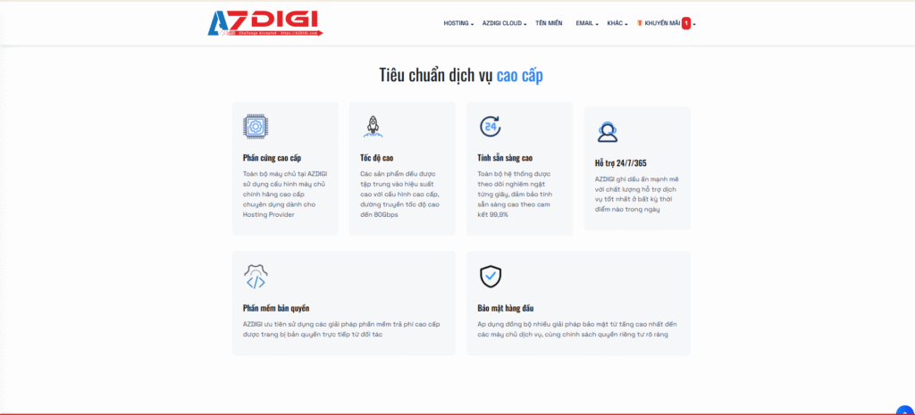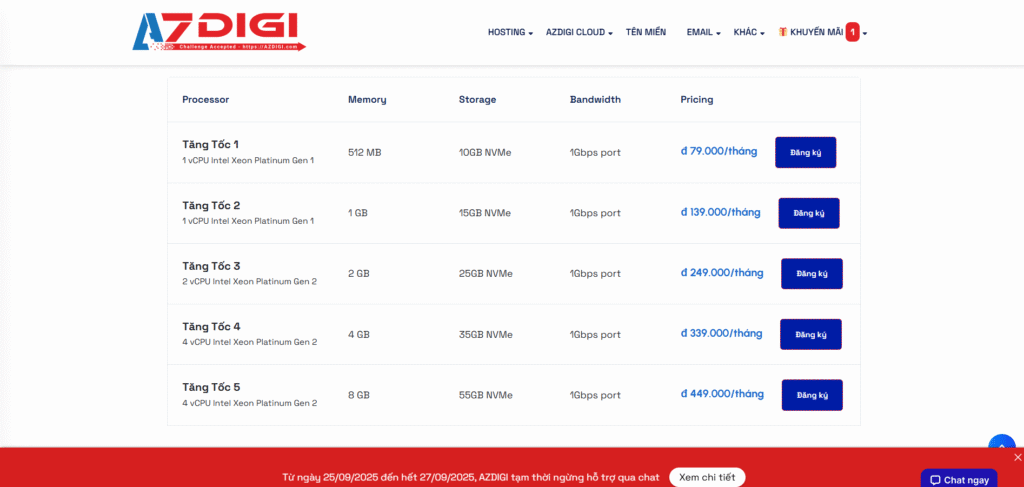 Tổng quan chi tiết các gói dịch vụ Hosting và VPS/Cloud AZDIGI