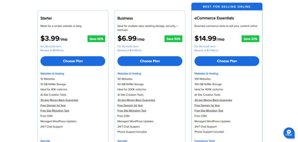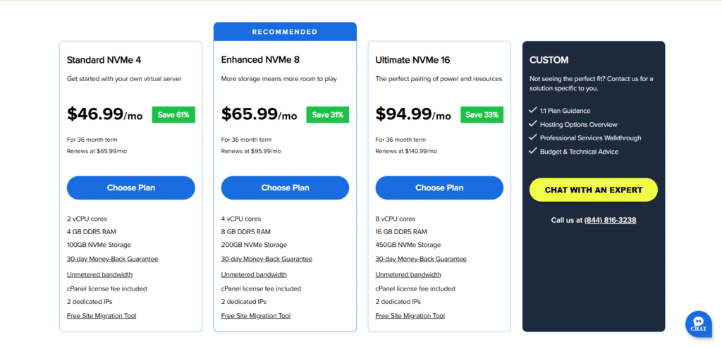 - Ưu điểm về sự dễ dàng và chi phí ban đầu: Bluehost có thể là một lựa chọn hấp dẫn cho các dự án cá nhân, các trang web mới bắt đầu hoặc các doanh nghiệp nhỏ có ngân sách hạn chế, nhờ vào giao diện thân thiện và mức giá khởi điểm cạnh tranh.