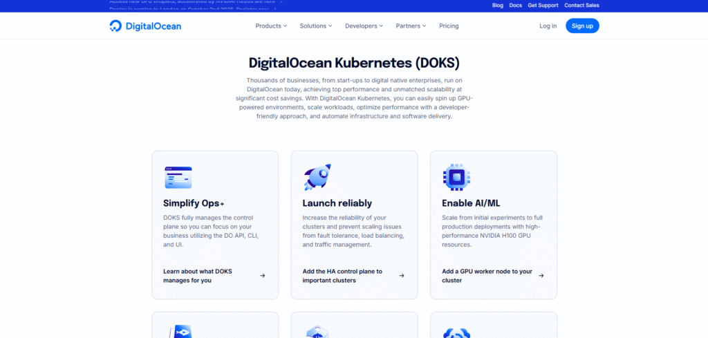 Đối với các dự án sử dụng kiến trúc microservices hoặc các ứng dụng container hóa, Managed Kubernetes (DOKS) của DigitalOcean là một giải pháp tuyệt vời. Dịch vụ này giúp triển khai container dễ dàng, tự động hóa việc mở rộng (scale) và tối ưu hóa quy trình DevOps. Nó đặc biệt hữu ích cho các ứng dụng SaaS, microservices, và các dự án AI/ML cần khả năng quản lý và mở rộng linh hoạt.