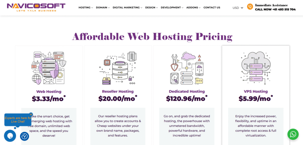 Navicosoft cung cấp một danh mục sản phẩm hosting rất rộng và đa dạng. Họ đáp ứng nhu cầu từ cá nhân đến các giải pháp cấp doanh nghiệp.