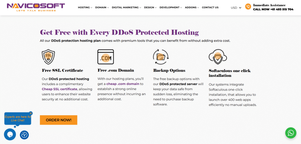 Điểm đặc biệt và là trọng tâm của bài đánh giá này chính là giải pháp DDoS Protected Hosting. Đây là dịch vụ chuyên biệt của Navicosoft. Nó tích hợp các biện pháp bảo mật nâng cao để chống lại các cuộc tấn công từ chối dịch vụ phân tán (DDoS). Đây là giải pháp mà Navicosoft nhấn mạnh để đảm bảo website có thể hoạt động liên tục (high uptime) ngay cả khi bị tấn công.