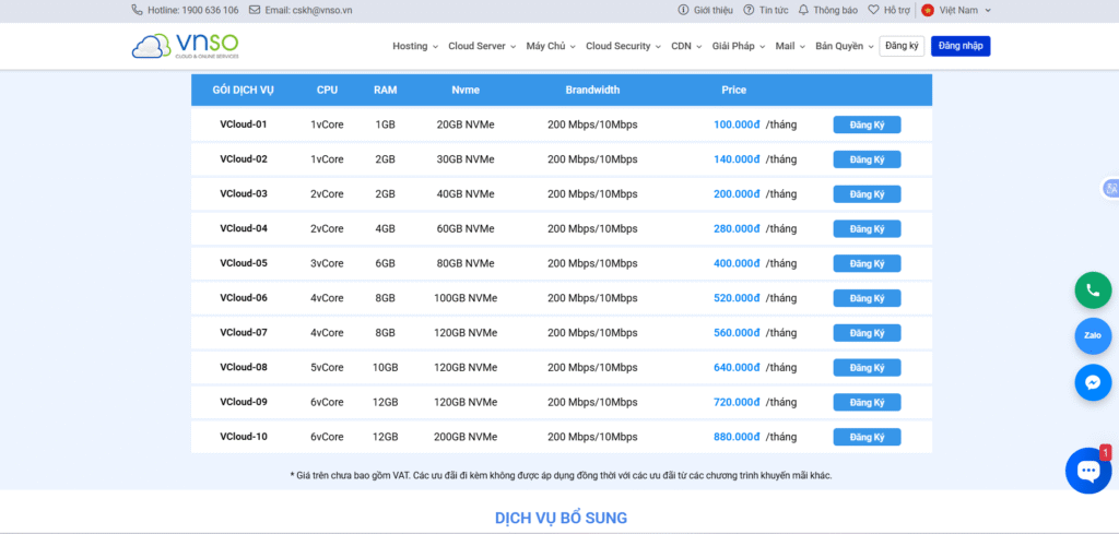 • VPS: VNSO cũng cung cấp dịch vụ máy chủ ảo, là một lựa chọn cân bằng giữa chi phí và hiệu suất.
